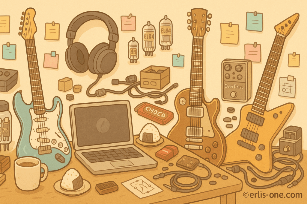 夜な夜な Zoom MRS-4 で録音し、BOSS NS-2でノイズを抑え、EMGピックアップやESPギター、Marshallアンプで録った音を、比べては聴き返し、何かを掴もうとしていた。