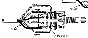 画像では右側のポッドです。ここにEMG81の配線のシールドとボディーアース等です。