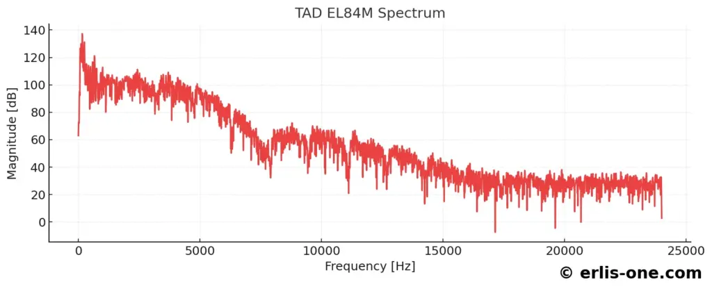 → 音の明るさ・輪郭・アタック。TADはこの帯域が非常に強く、弾いた瞬間のパキッとした明瞭な倍音が目立つ。 - 超高域(6kHz〜)