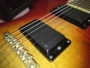 これオークッションに出ていたやつです。メーカーアウトレット品!でオークションで落札したのではなく、そこのお店で直接通販!傷ありって書いてあったけど、ゴマ粒一個程度の傷!価格はなんと!秘密です。リアのみEMG85に交換。でしたがMarshallのAVT50との相性が悪く現在は、初期のPICK UPに戻してます。